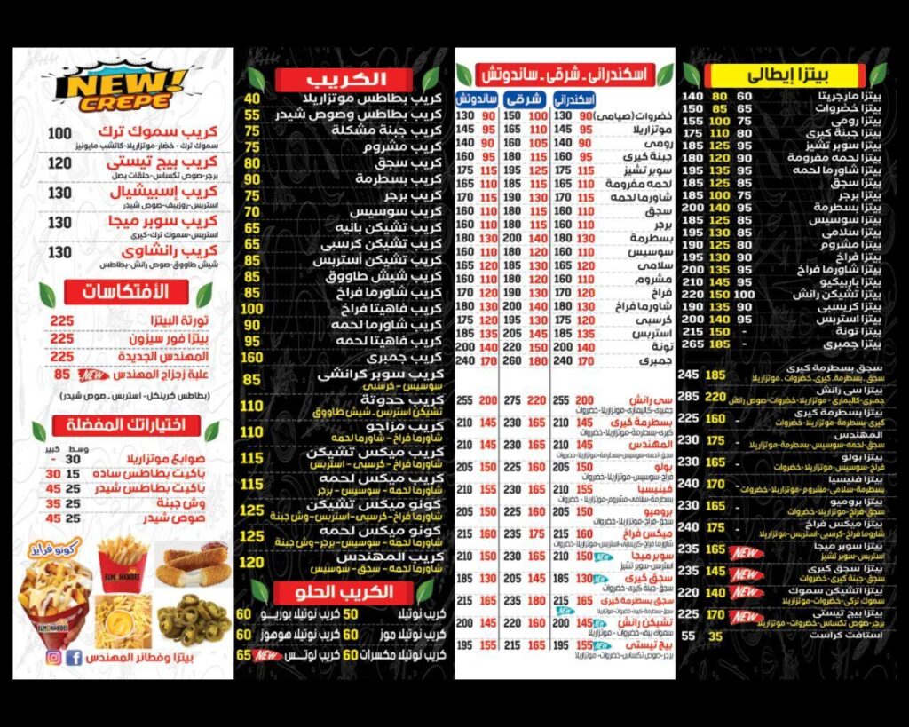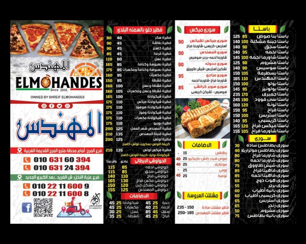 منيو المهندس فرع عزبة النخل – شارع الفريد عزبة النخل الغربية